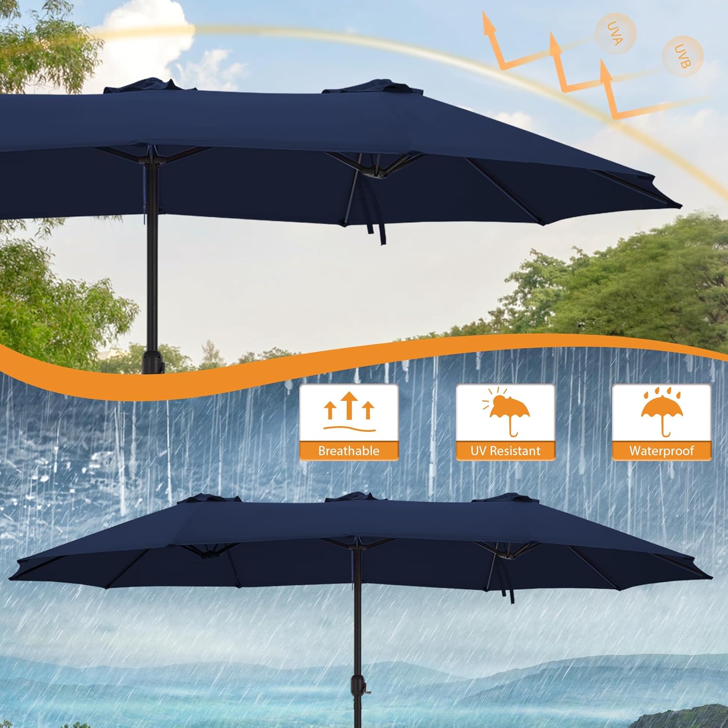 12 Ribs Umbrella Canopy Replacement for 15ft Double-Sided Patio Umbrella, Frame NOT Included,Navy Blue