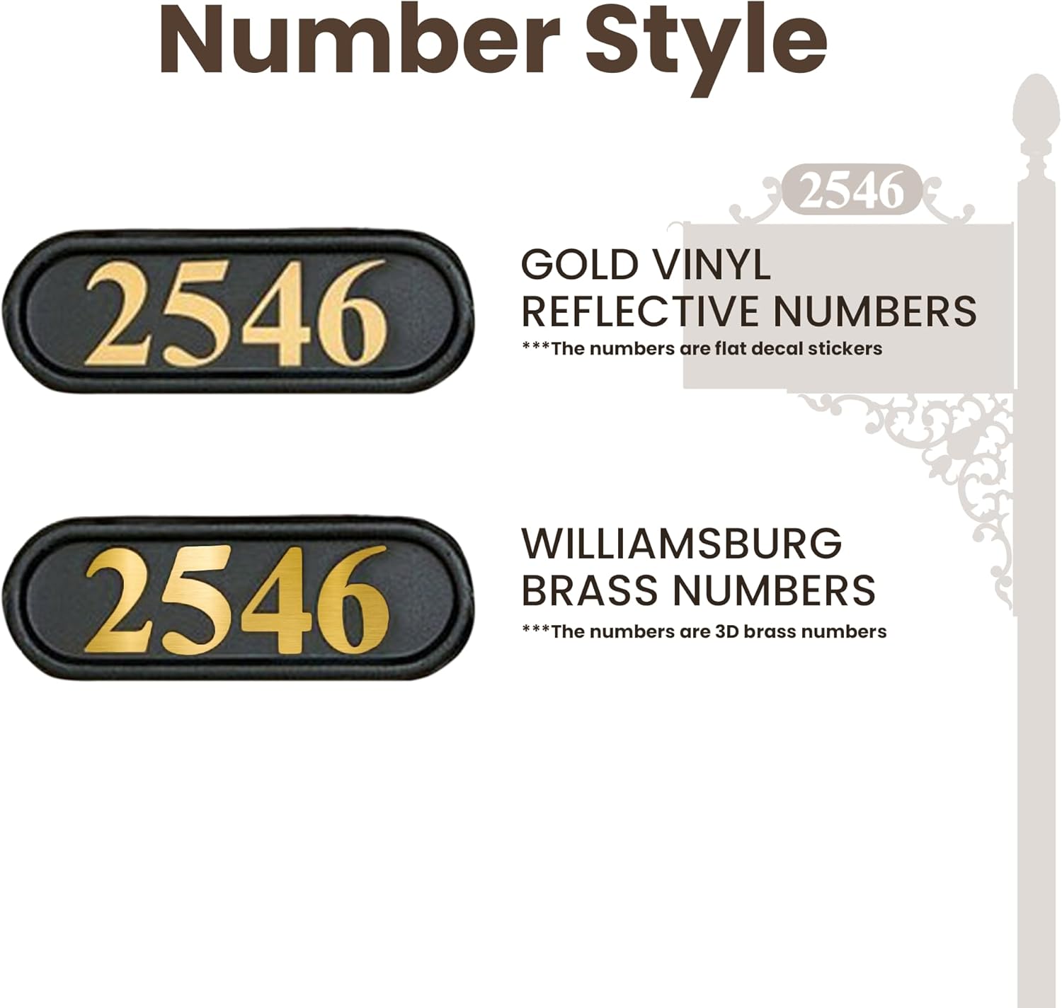 - Your purchase includes up to five 2-Inch Solid Brass or Gold Reflective Numbers.