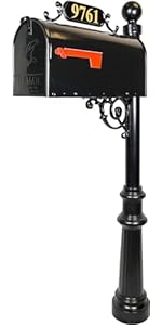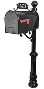 ADDRESSES OF DISTINCTION Charleston Mailbox & Post System – Black Rust Resistant Mailbox – Includes Address Plaque, Numbers, Scroll & Mounting Hardware (Large)