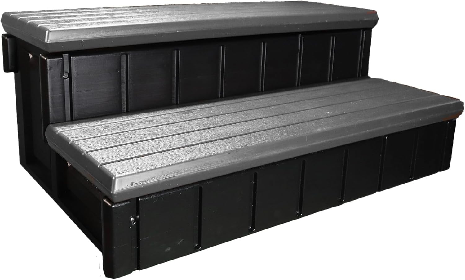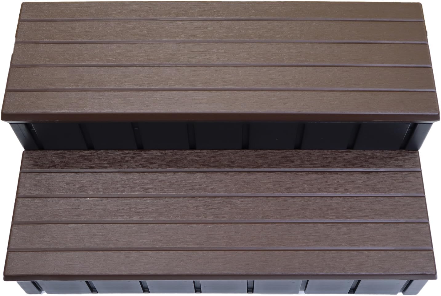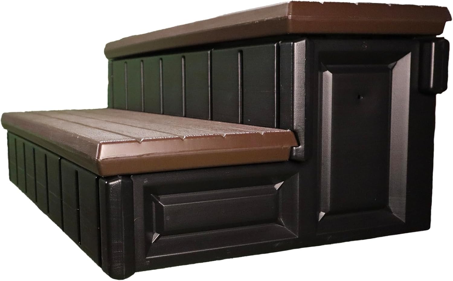 Confer Plastics Two Tier 36" Wide Deluxe Hot Tub Step. Non-Skid Spa Steps, Easy Installation, Sturdy, Long Lasting Upgrade to Your Space. Proudly Made in USA. - Espresso