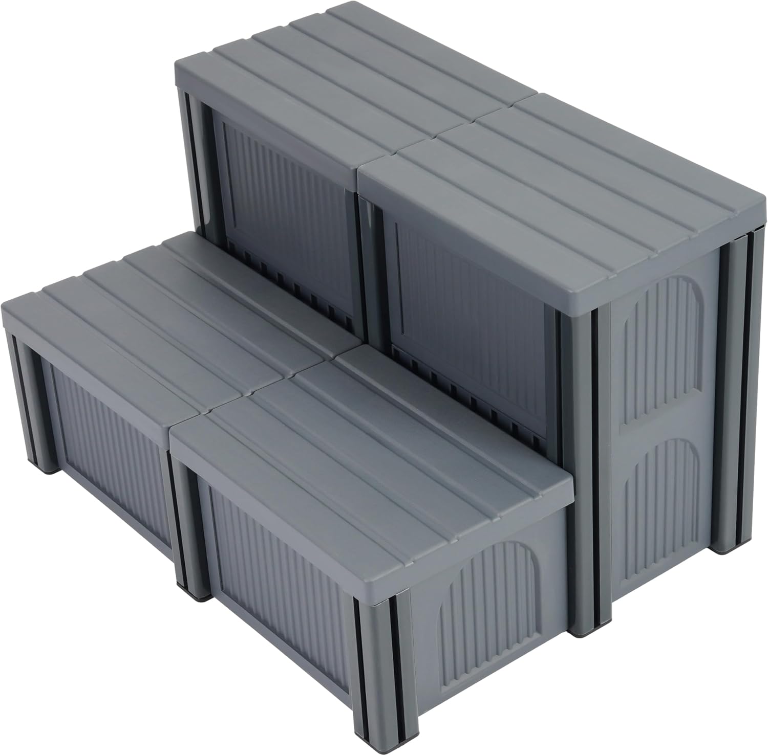 Hot Tub Steps 2-Step with Storage 500 LBS Capacity Textured Spa Stairs Step for Universal Hot Tub/Camper/SPA Pool/Pet Stairs Charcoal Grey