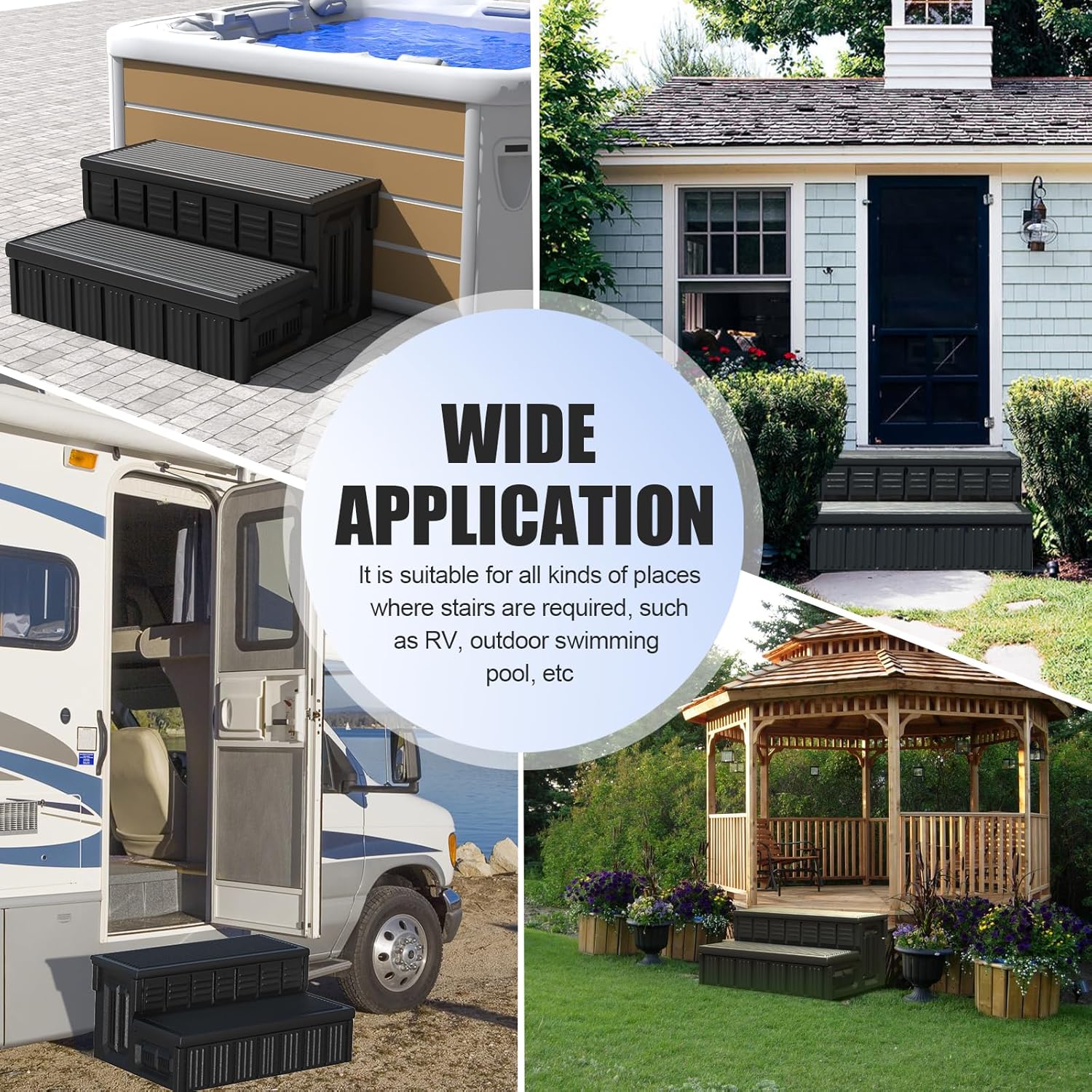 Hot Tub Steps, Outdoor Spa Steps with Storage, Non-Slip & Sturdy Hot Tub Stairs, 36 Inches Long, Black