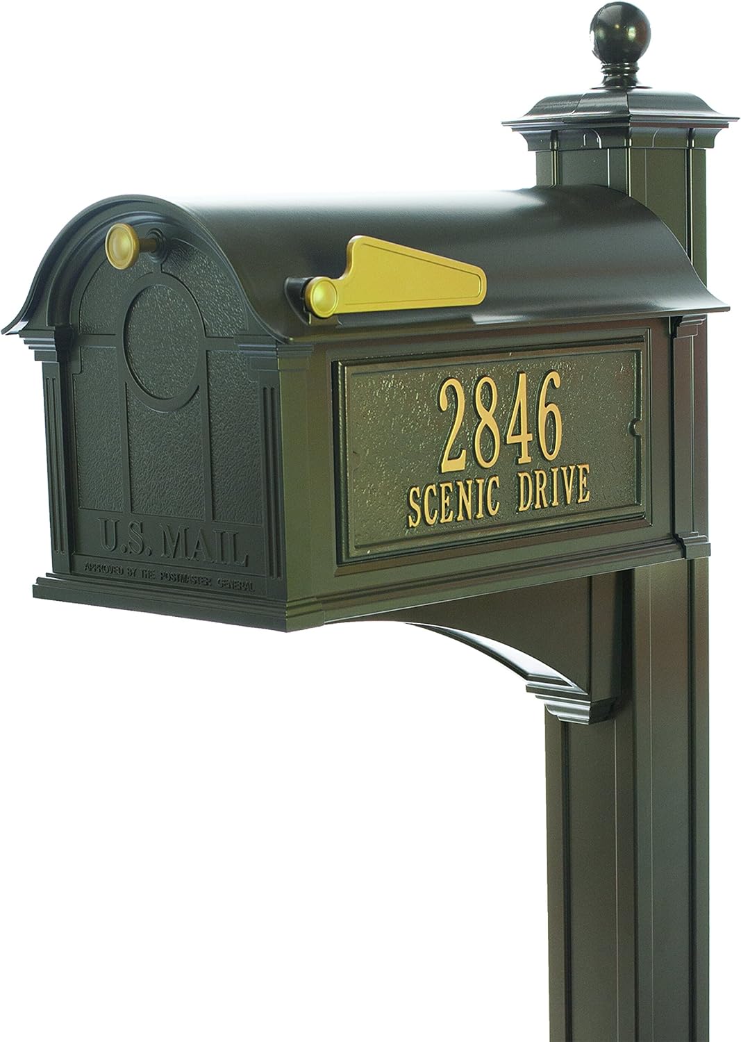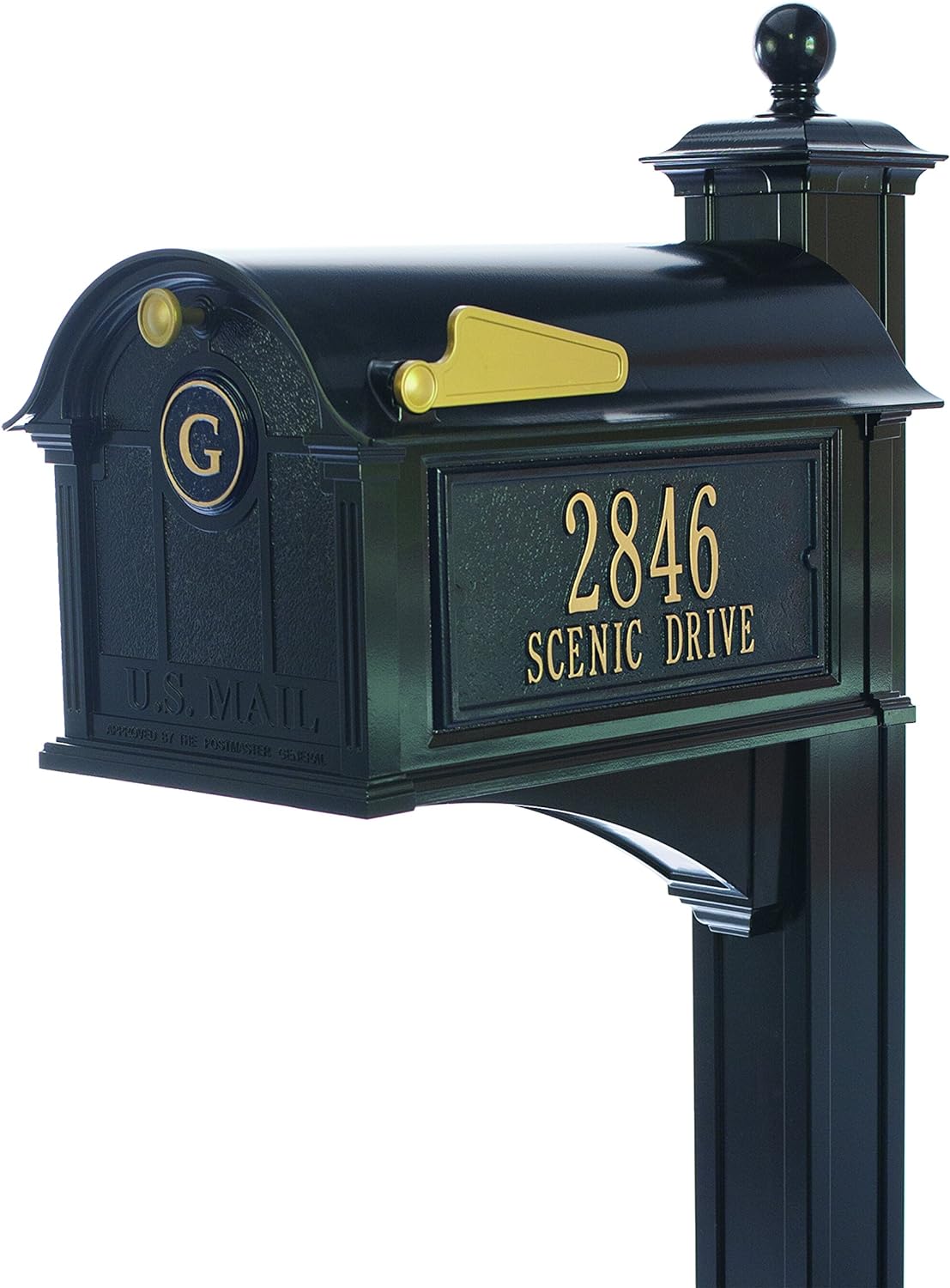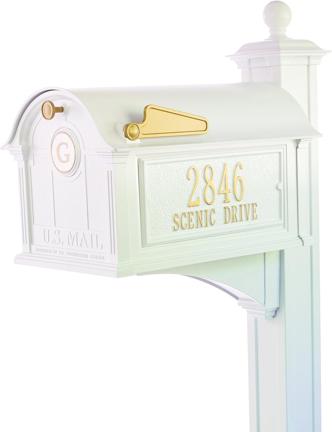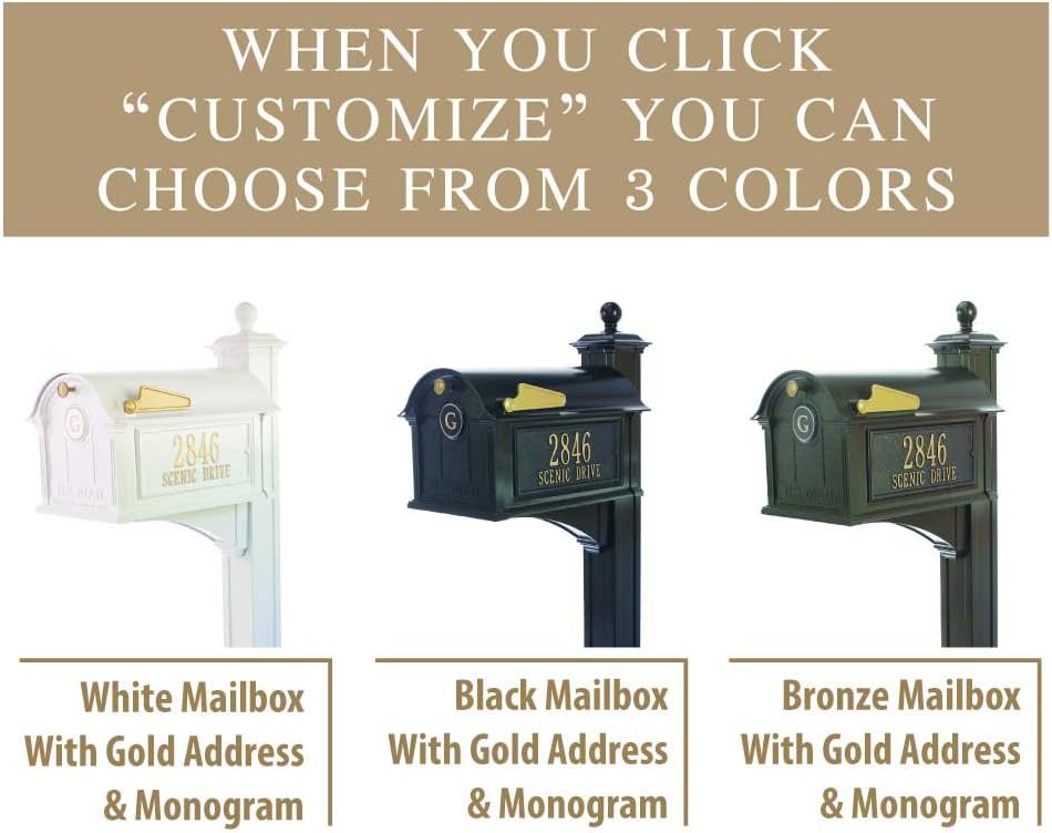 Whitehall™ Personalized Whitehall Balmoral Mailbox with Side Address Plaques, Monogram & Post Package (3 Colors Available)
