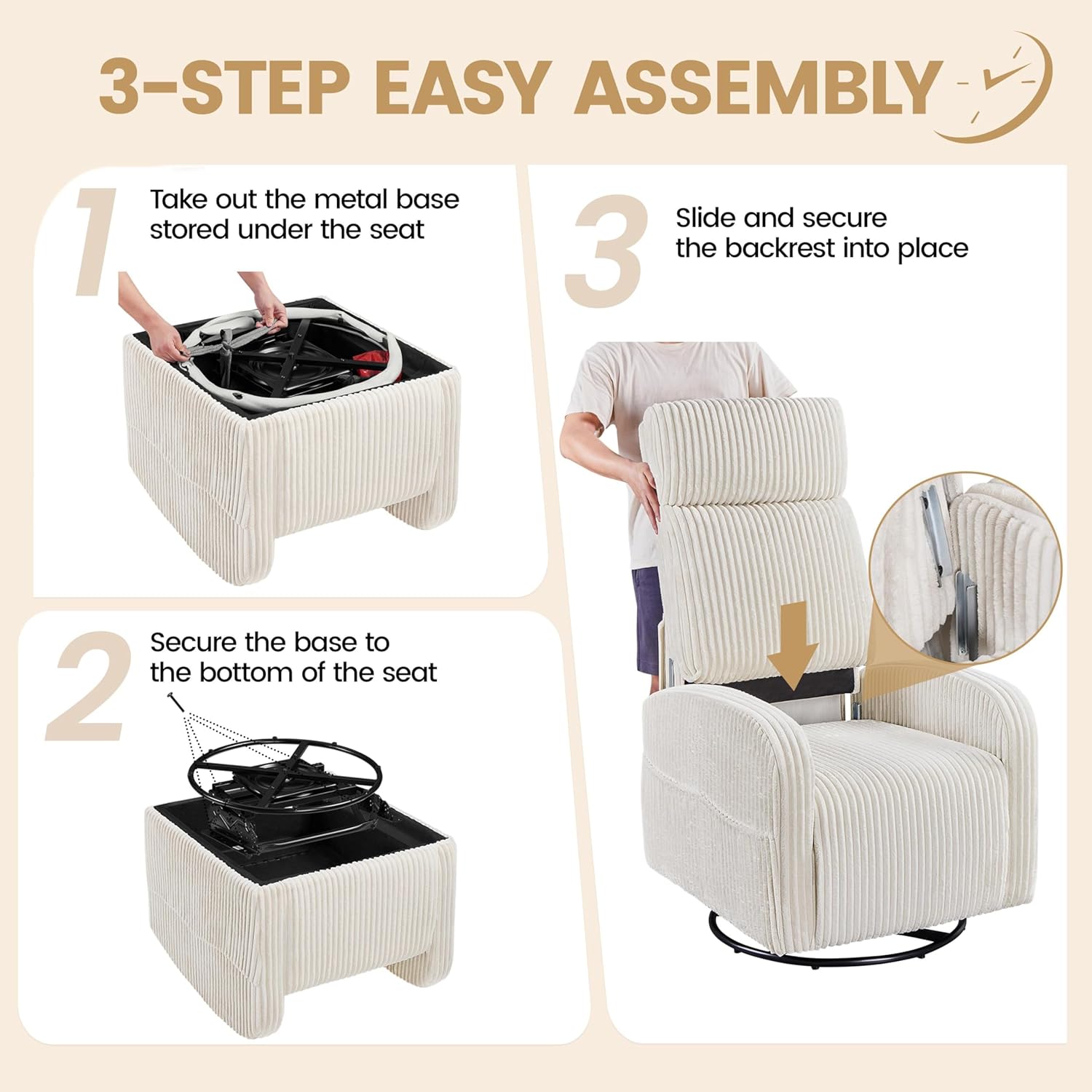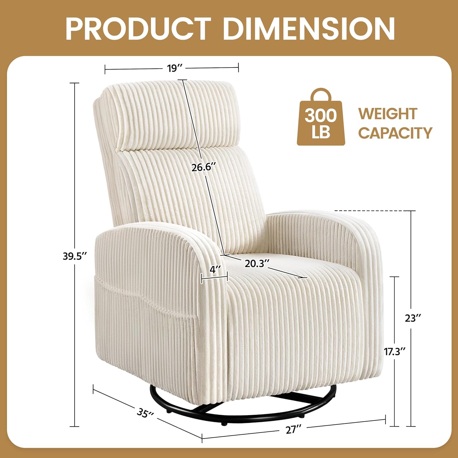 Yaheetech 360° Swivel Glider Chair for Nursery, Rocking Chair Nursing Chair with Side Pockets, Corduroy Glider for Living Room with High Back Beige